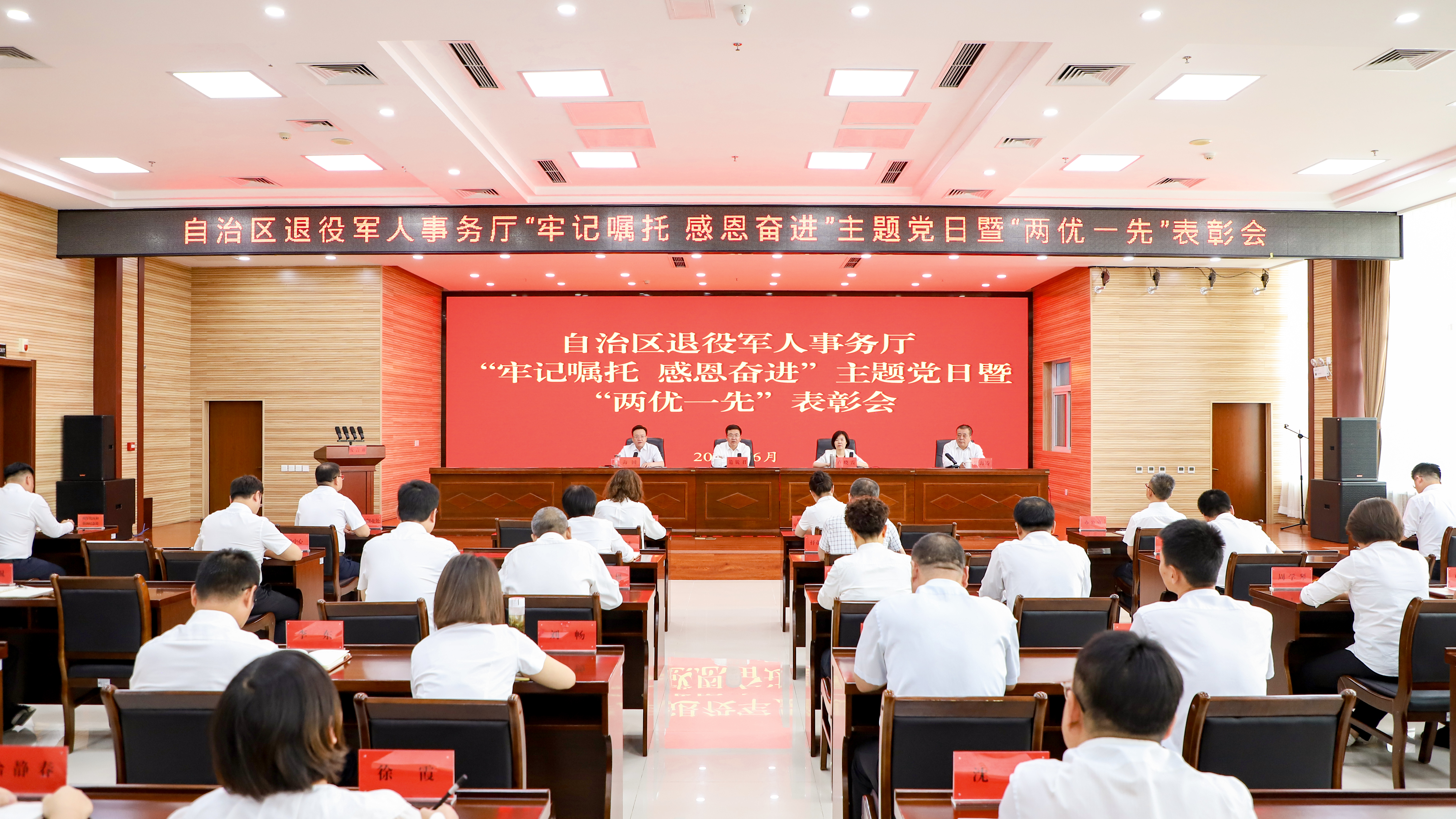 自治区退役军人事务厅举行“牢记嘱托感恩奋进”主题党日活动暨“两优一先”表彰会
